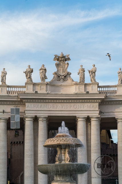 Saint Peter’s Square was designed to be large enough to give the greatest number of people the Pope’s blessing and evoke a sense of awe. In fact, the pope gave a speech that day, but we avoided the crowd. At the center of the square is Saint Peter’s obelisk, which is nearly 4000 years old. It was originally from Egypt, and then brought to Rome with 12 others. This one has been in the Vatican since 1586 when Pope Sixtus V decided to re-erect all obelisks lying in the ruins of Rome.