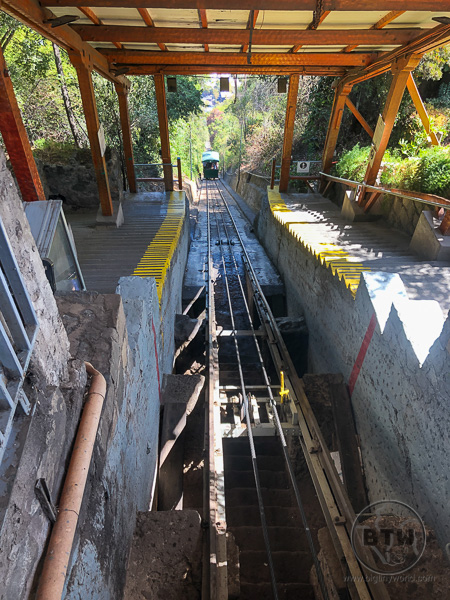 Svin was kind enough to show us around the city a couple times during our stay. We hiked up San Cristóbal Hill to see much of the city from above. It was picturesque with the main city buildings towering and the backdrop of the Andes Mountains. At the top, we stopped by a funicular and watched it descend from the top.